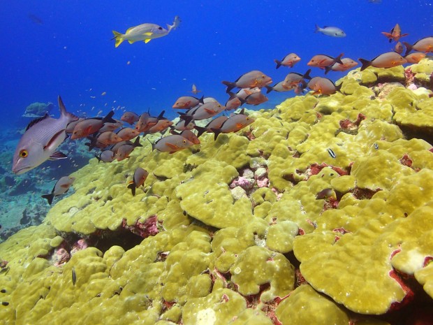 Their analysis, published today in the journal Coral Reefs, shows that the 2015 heatwave killed 60% of BIOT’s hard corals at depths of up to 10 metres, with some species more affected than others. 86% of Acropora corals, for example, previously the most abundant, perished.