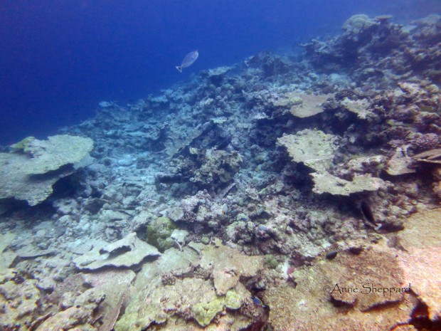 "This disastrous scene extends down to about 15 metres in depth after which coral cover became more like a badly damaged coral reef but a reef at least.".