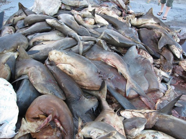 Dead sharks seized from an illegal vessel captured by the BIOT patrol vessel, Pacific Marlin, in February 2012 (c) Charles Sheppard