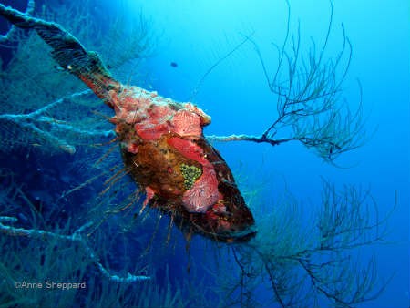 Bivalave and sponge on sea fan, Salomons Atoll