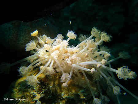 Soft coral (Xenia sp). There are over 220 different types of coral in the Chagos Islands. In the absence of pollution and fishing, the reefs around the archipelago may present some of the least degraded reefs in the world. They provide a ‘baseline’ for natural healthy coral reef ecosystems that helps the scientific community to better understand how reefs work to help with their conservation and management.