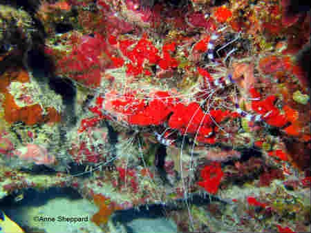 Cleaner Shrimp (Stenopus hispidus) found in Egmont Atoll. The combination of tropical islands, unspoiled coral reefs and adjacent oceanic abyss, make this marine reserve comparable in global importance to the Great Barrier Reef and the Galapagos Islands.