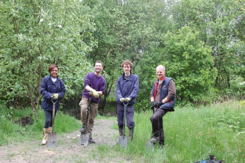 Claudia with clearing away unwanted vegetation in preparation for a new path to take visitors through a woodland walk in Moston Fairway. Not much larger than a football pitch, this former site of the Moston Exchange railway sidings has flourished over the last century as an urban wilderness. The site has dry grassy areas, woodland, and even an urban marsh (unique in Manchester) that acts as a haven for breeding common frogs and smooth newts.